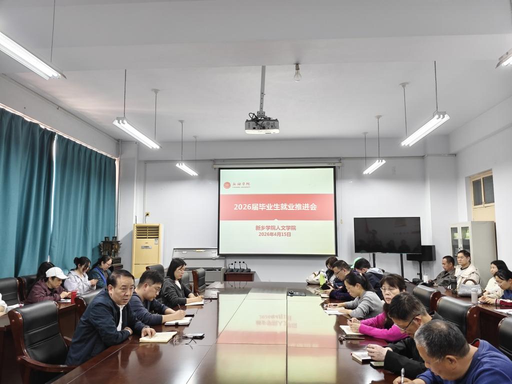 为深入贯彻落实高校毕业生就业工作相关部署,全力推动毕业生高质量充分就业,2026年4月15日下午3点,人文学院召开2026届毕业生就业工作推进会。学院领导班子、毕业班辅导员、就业工作联络员、全体就业指导和帮扶教师参加会议,会议由党委书记、院长李金玉主持。李金玉传达了学校就业工作会议精神,聚焦当前就业工作重点,围绕认清形势、统一思想;担当负责、认真指导;加强协调、合力推进三个方面,对下一阶段学院整体就业工作进行全面部署与细化安排。