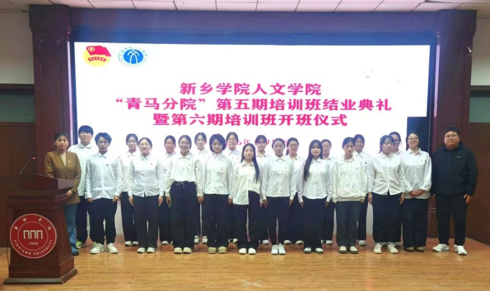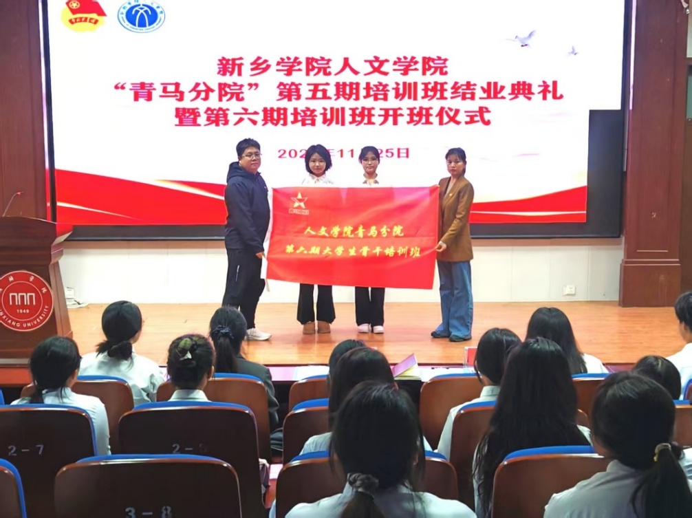 2025年11月25日下午,新乡学院人文学院“青马分院”第五期培训班结业典礼暨第六期培训班开班仪式在A01报告厅顺利举办。本次活动旨在深化习近平新时代中国特色社会主义思想的高校传播,落实思想政治教育要求,强化共青团对青年的引领力,人文学院相关师生及两期青马班学员共同参与。