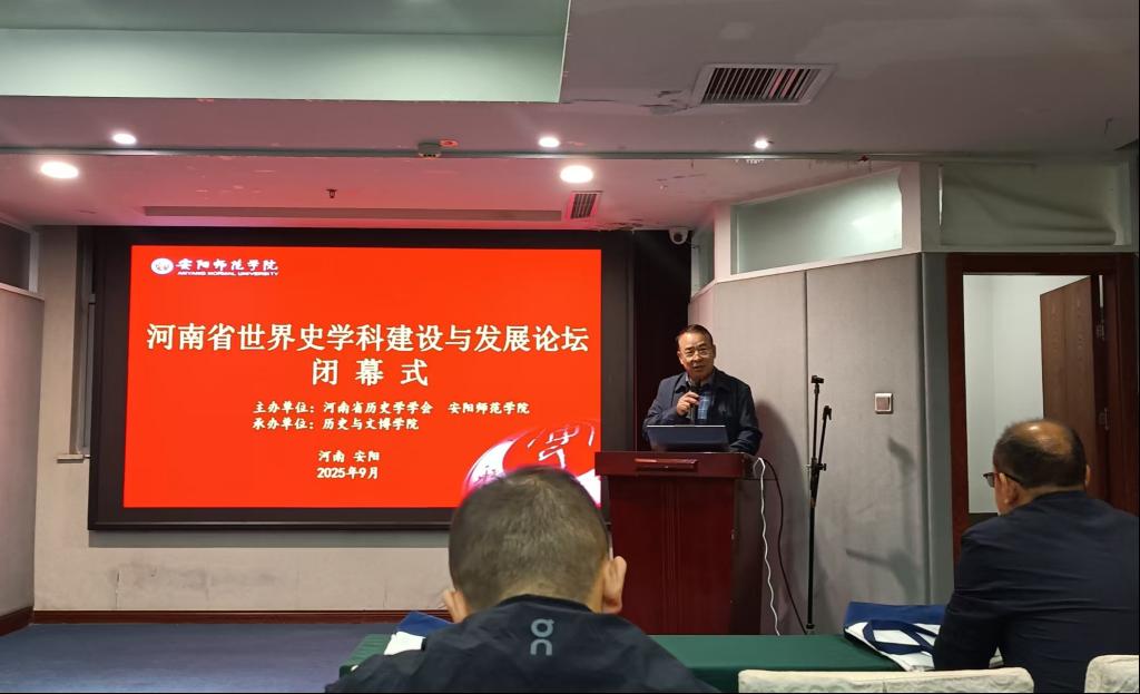 2025年9月20日,“河南省世界史学科建设与发展论坛”在安阳举行。此次学术论坛由河南省历史学学会、安阳师范学院主办,安阳师范学院历史与文博学院承办。来自郑州大学、河南大学、河南师范大学、新乡学院等十余所高校的50余名专家学者参加了本次会议。我院党委书记、院长李金玉教授与王连旗教授、赫兴无教授、晁根池副教授、张磊博士、申冰冰博士、孔伟博士、崔德龙博士应邀参会。