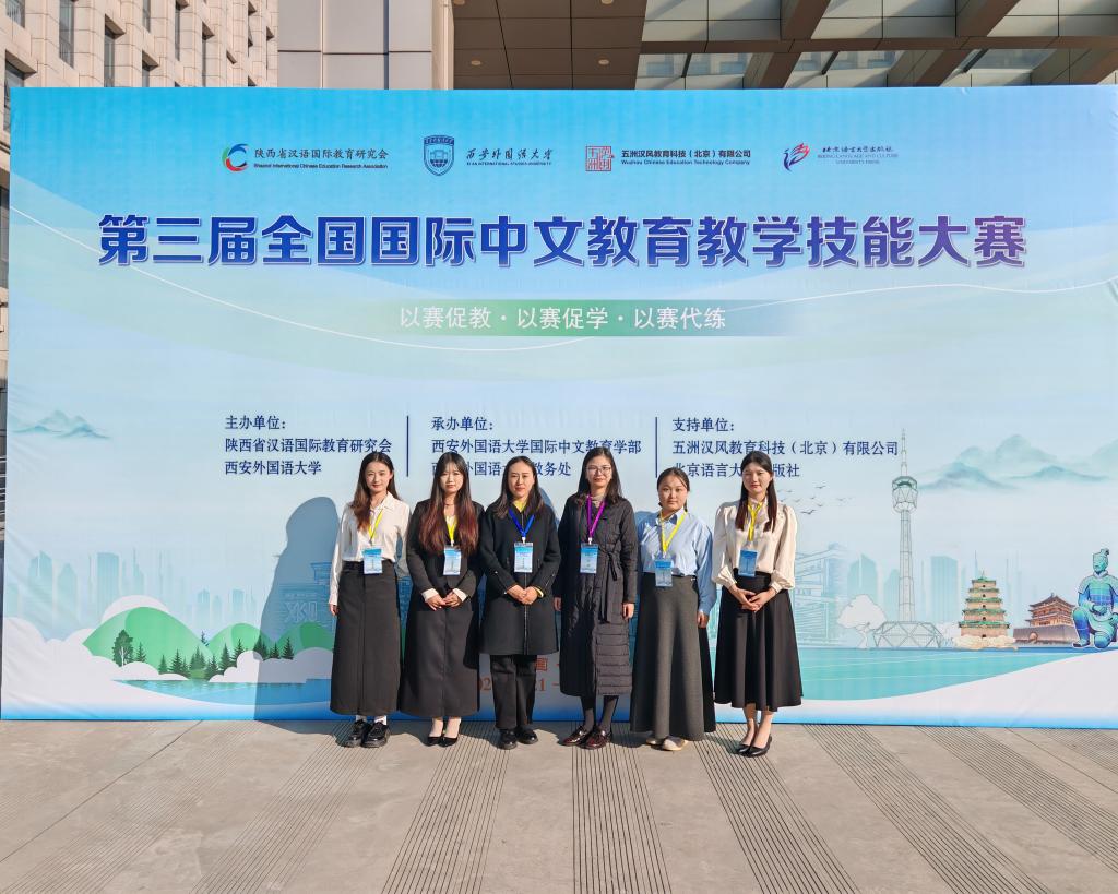 2025年11月21至23日,由陕西省汉语国际教育研究会、西安外国语大学主办的第三届全国国际中文教育教学技能大赛圆满落幕。我校人文学院2023级汉语国际教育专业马紫蕊、吴昕芮、张莹莹、张好好四位同学在比赛中表现出色,最终斩获国家级优秀奖,这是我校汉语国际教育专业学子首次参加该项比赛。