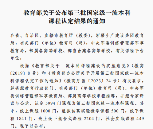 近日,教育部发布《关于公布第三批国家级一流本科课程认定结果的通知》(教高函〔2025〕9号),我院韩辉教授负责的《大学语文与应用文写作》课程成功入选,这是我院在课程建设领域斩获的又项一国家级殊荣,标志着我院在课程体系构建与教学改革创新方面取得重要突破。
